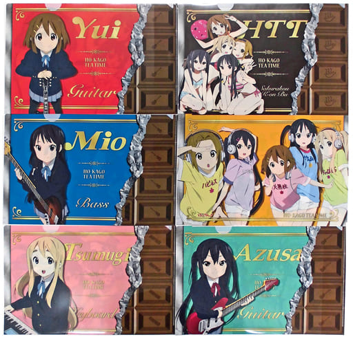 絵柄6種:「軽音部5人」、「平沢唯」、「秋山澪」、 「田井中律」、「琴吹紬」、「中野梓」